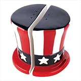 Two salt and pepper shakers come together in one terrific table topper! Playful patriotic hat looks good enough to wear to your favorite holiday parade. Each is 1 7/2 inches x 3 1/2 inches x 3 3/8 inches high. Hand wash only. Pair. Read more